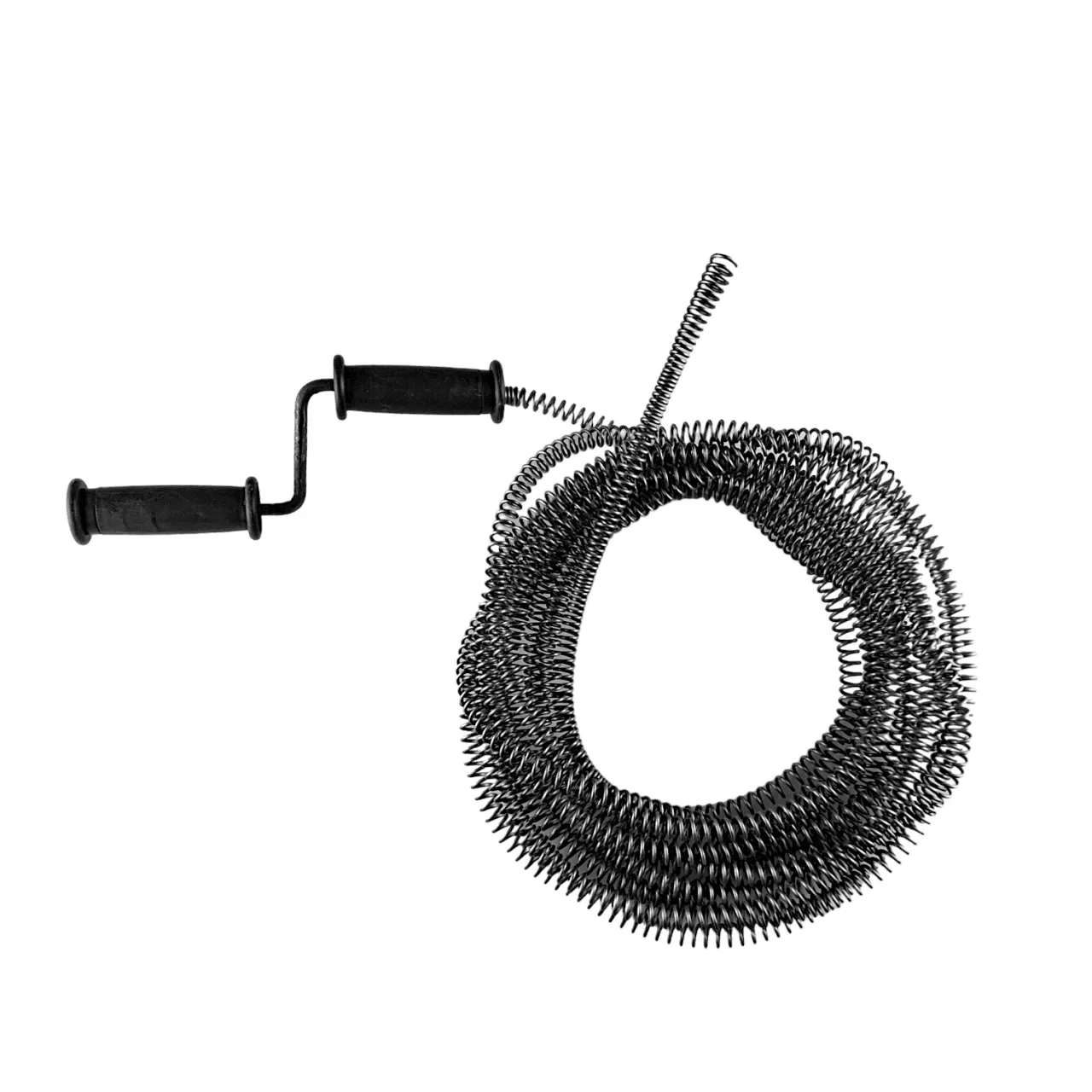 Трос для очистки труб оснащен специальной двойной усиленной пластиковой ручкой, с помощью которой происходит вращение и процесс очистки становиться более удобным и безопасным.